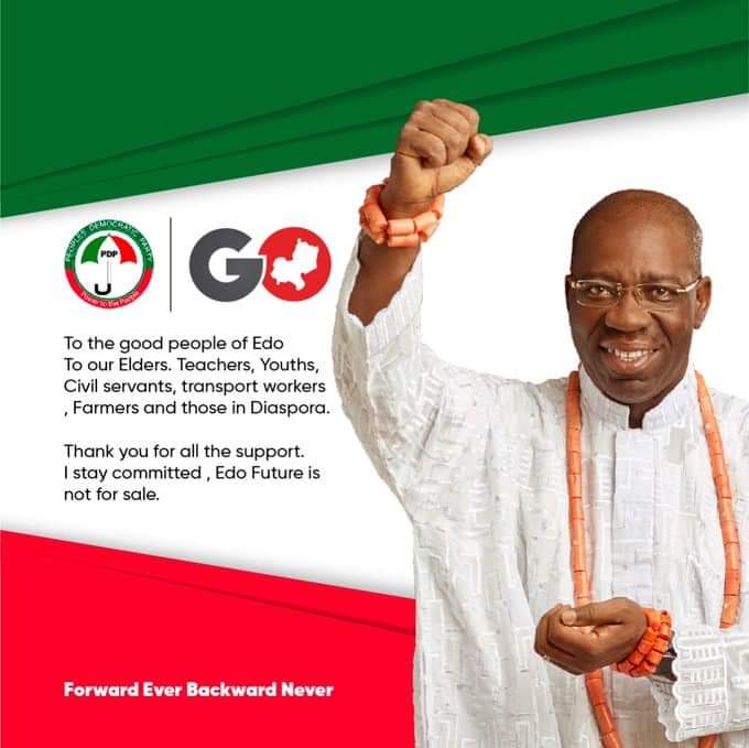 Just in: Governor Godwin OBASEKI, emerged as PDP governorship candidate for Edo 2020… Tega Ezekiel Ughara Uncategorized Jun 25, 2020 1 Minute Share this: Share on X (Opens in new window) X Share on Facebook (Opens in new window) Facebook Like Loading... Related Published by Tega Ezekiel Ughara A farmer, speaker, teacher, writer, community leader, politician... View all posts by Tega Ezekiel Ughara Published Jun 25, 2020